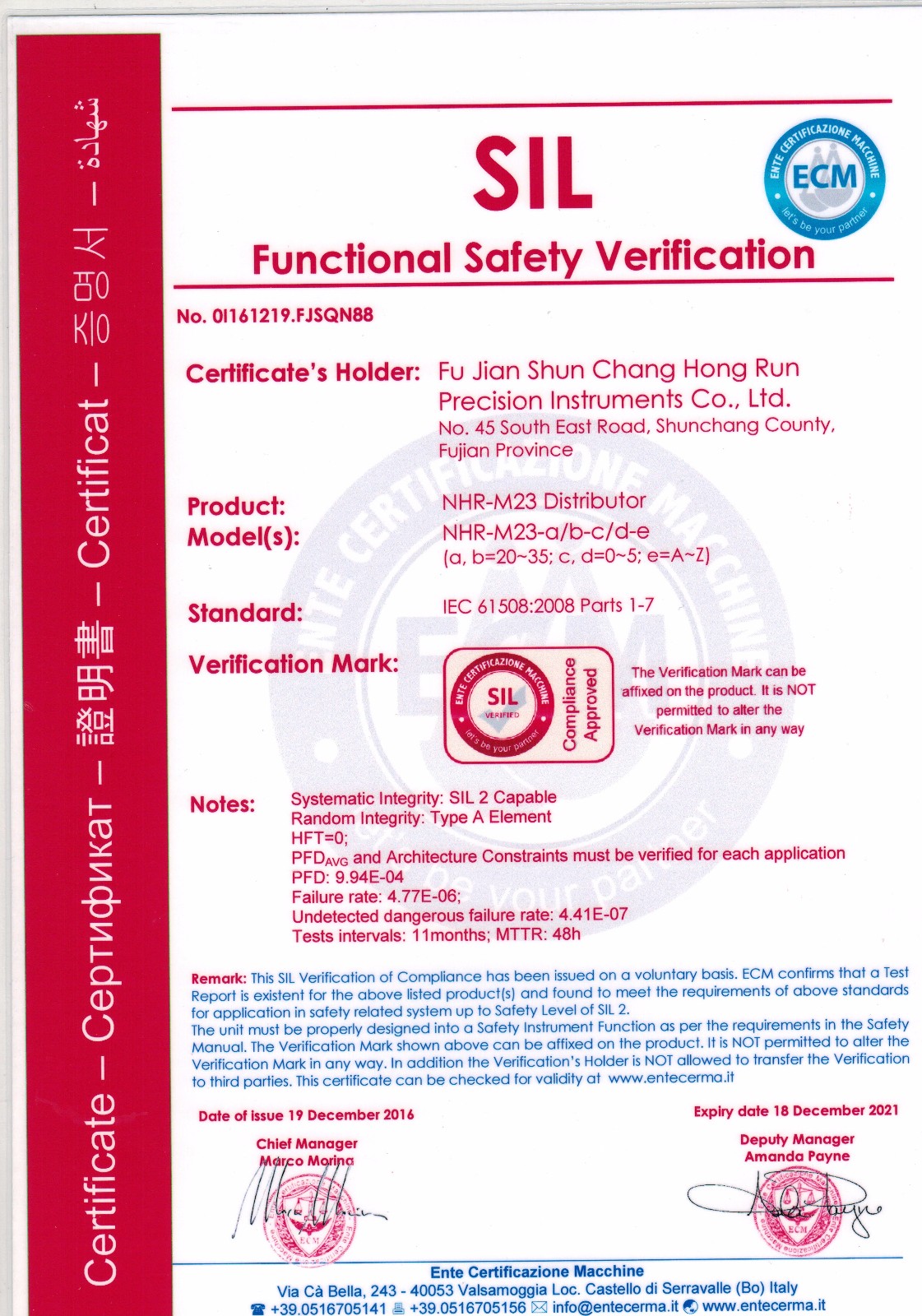 虹潤智能儀表產(chǎn)品獲得國際SIL功能安全認(rèn)證