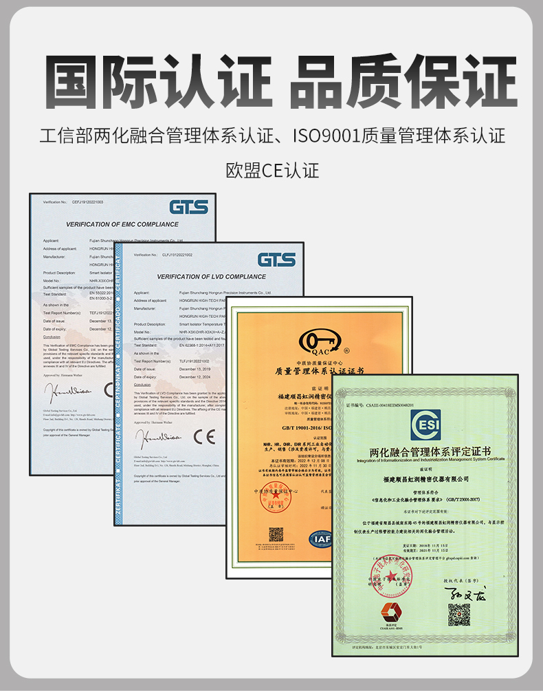 虹潤公司是專業(yè)生產(chǎn)隔離器的國家專精特新“小巨人”企業(yè)。生產(chǎn)的導(dǎo)軌式智能隔離器 ,具有高清顯示單元,參數(shù)可設(shè)置,寬電源供電,響應(yīng)快,帶RS485通訊等特點(diǎn)。產(chǎn)品獲得信號隔離器、一種二端子模塊、無源信號隔離器等3項(xiàng)國家發(fā)明專利,主持起草現(xiàn)場設(shè)備工具(FDT)接口規(guī)范、工業(yè)過程測量和控制系統(tǒng)用隔離式安全柵、工業(yè)過程測量和控制系統(tǒng)用配電器等3項(xiàng)國家標(biāo)準(zhǔn),以及通信系統(tǒng)多通道數(shù)據(jù)采集控制終端規(guī)范軍用標(biāo)準(zhǔn),參與國際5G標(biāo)準(zhǔn)制定,取得智能隔離器等2項(xiàng)相關(guān)軟件著作權(quán)。產(chǎn)品廣泛應(yīng)用于電力、石化,冶金、制藥、水處理、機(jī)械配套等各種工業(yè)現(xiàn)場。