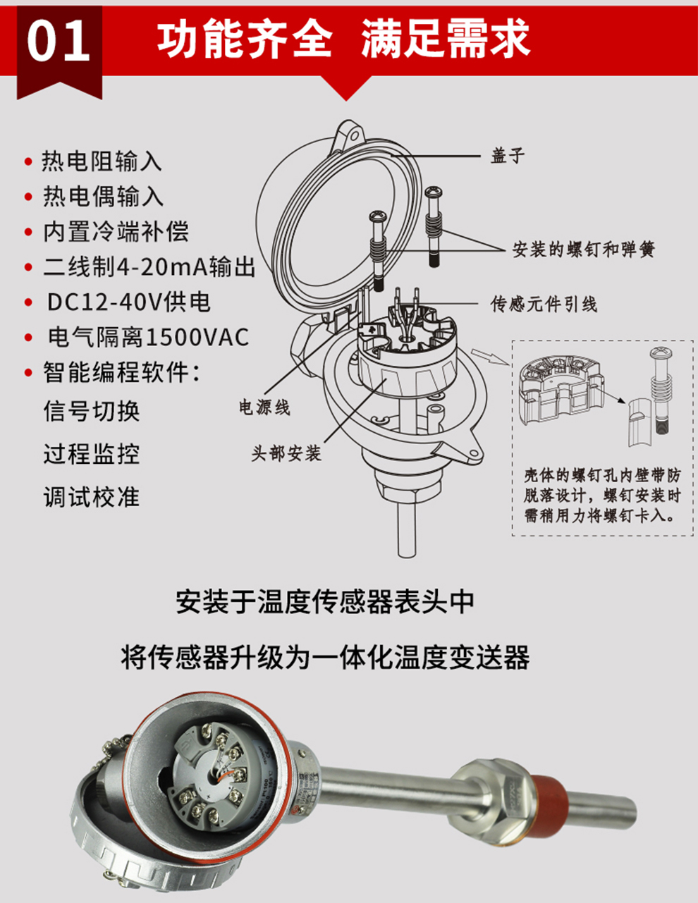 虹潤(rùn)公司是專業(yè)生產(chǎn)溫度變送器的國(guó)家專精特新“小巨人”企業(yè)。生產(chǎn)隔離智能溫度變送器,具有適配各類溫度傳感器,精度高,穩(wěn)定性好,通過編程線修改輸入信號(hào)類型及量程,高抗干擾等特點(diǎn)。該產(chǎn)品不僅通過HART基金會(huì)認(rèn)證、德國(guó)萊茵 CE 認(rèn)證與 SIL 功能安全認(rèn)證,還獲得具備減震抗干擾能力的溫度變送器、信號(hào)隔離器、一種二端子模塊、無(wú)源信號(hào)隔離器等4項(xiàng)國(guó)家發(fā)明專利,主持起草物聯(lián)網(wǎng)智能溫度儀表、現(xiàn)場(chǎng)設(shè)備工具(FDT)接口規(guī)范、工業(yè)過程測(cè)量和控制系統(tǒng)用溫度變送器等3項(xiàng)國(guó)家標(biāo)準(zhǔn),以及通信系統(tǒng)多通道數(shù)據(jù)采集控制終端規(guī)范軍用標(biāo)準(zhǔn),參與國(guó)際5G標(biāo)準(zhǔn)制定,取得智能溫度變送器、HART溫度變送器等3項(xiàng)相關(guān)軟件著作權(quán)。產(chǎn)品廣泛應(yīng)用于石油、化工、電力、冶金、制藥、食品、水處理等各種工業(yè)領(lǐng)域。