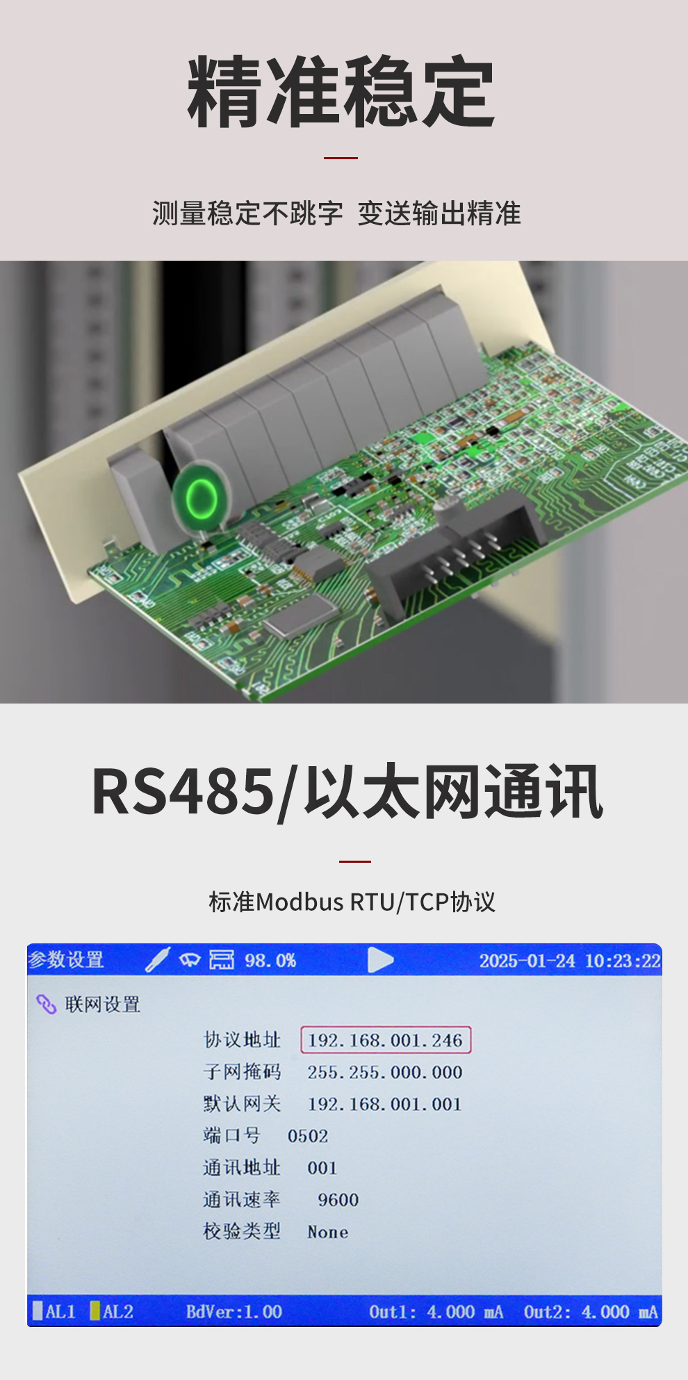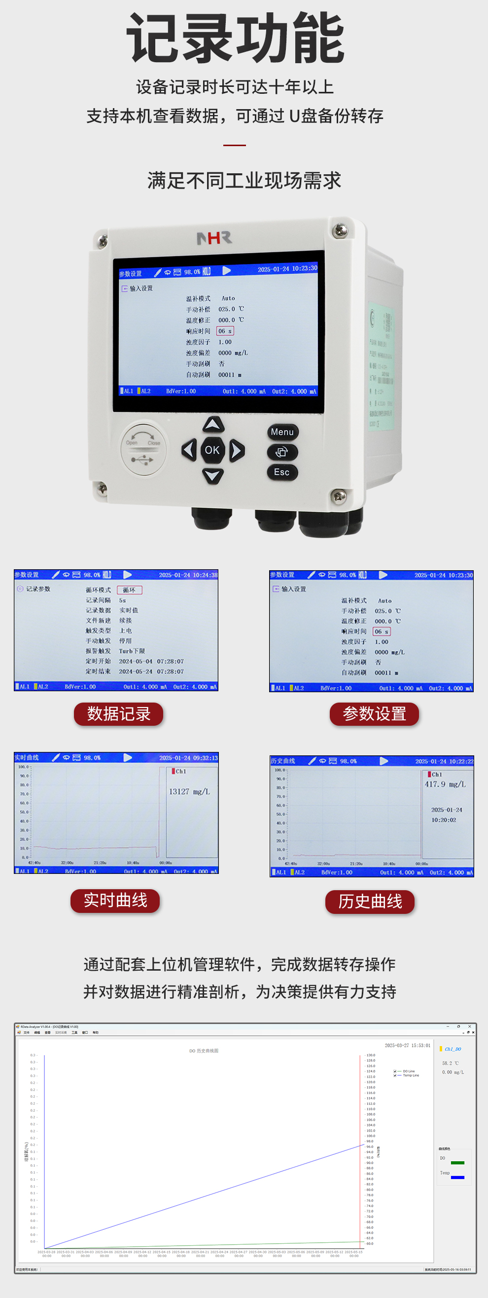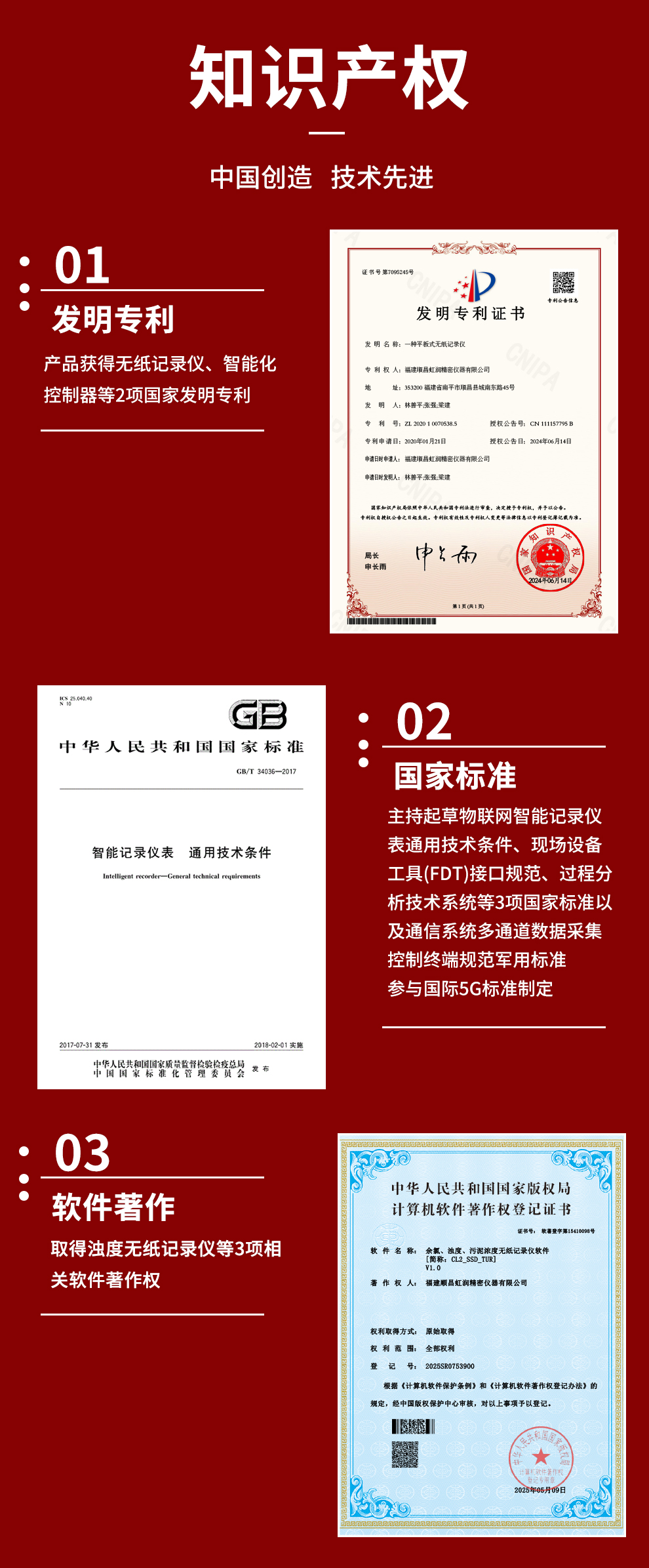 虹潤(rùn)公司是專業(yè)生產(chǎn)水質(zhì)分析儀的國(guó)家專精特新“小巨人”企業(yè)。生產(chǎn)的濁度/污泥記錄儀,具有彩色大屏顯示,測(cè)量精準(zhǔn)穩(wěn)定不跳字,數(shù)據(jù)記錄與轉(zhuǎn)存,RS485/以太網(wǎng)通訊,配套上位機(jī)管理軟件等特點(diǎn)。產(chǎn)品獲得一種平板無(wú)紙記錄儀、智能化控制器等2項(xiàng)國(guó)家發(fā)明專利;主持起草物聯(lián)網(wǎng)智能記錄儀表通用技術(shù)條件、現(xiàn)場(chǎng)設(shè)備工具(FDT)接口規(guī)范.、過程分析技術(shù)系統(tǒng)等3項(xiàng)國(guó)家標(biāo)準(zhǔn),以及通信系統(tǒng)多通道數(shù)據(jù)采集控制終端規(guī)范軍用標(biāo)準(zhǔn),參與國(guó)際5G標(biāo)準(zhǔn)制定;取得濁度、污泥濃度無(wú)紙記錄儀等3項(xiàng)相關(guān)軟件著作權(quán)。產(chǎn)品廣泛應(yīng)用于市政供水、污水處理、食品、制藥、造紙、石化、冶金、水處養(yǎng)殖等諸多領(lǐng)域。