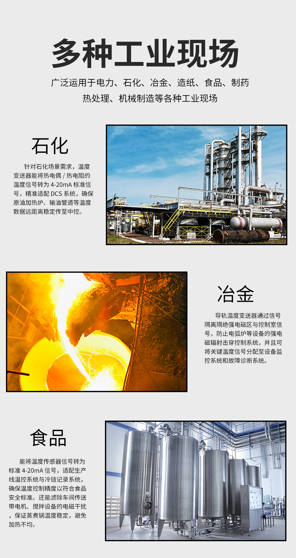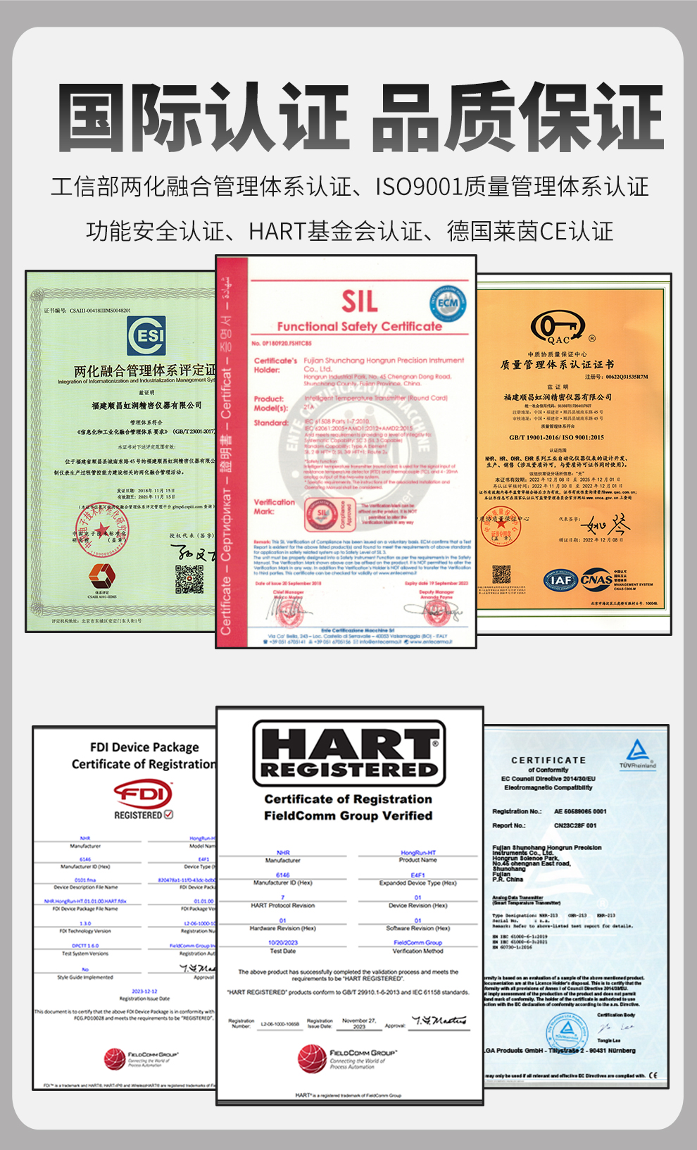 虹潤公司是專業(yè)生產(chǎn)溫度變送器的國家專精特新“小巨人”企業(yè)。生產(chǎn)的溫度變送器,具有采用磁隔離技術(shù),配套編程器可修改參數(shù),抗干擾能力強,穩(wěn)定性好,帶RS485或HART通訊等特點。該產(chǎn)品不僅通過HART基金會認(rèn)證、德國萊茵 CE 認(rèn)證與 SIL 功能安全認(rèn)證,還獲得具備減震抗干擾能力的溫度變送器、信號隔離器、一種二端子模塊、無源信號隔離器等4項國家發(fā)明專利,主持起草物聯(lián)網(wǎng)智能溫度儀表、現(xiàn)場設(shè)備工具(FDT)接口規(guī)范、工業(yè)過程測量和控制系統(tǒng)用溫度變送器等3項國家標(biāo)準(zhǔn),以及通信系統(tǒng)多通道數(shù)據(jù)采集控制終端規(guī)范軍用標(biāo)準(zhǔn),參與國際5G標(biāo)準(zhǔn)制定,取得溫度變送器等5項相關(guān)軟件著作權(quán)。產(chǎn)品廣泛應(yīng)用于石油、電力、化工,冶金、制藥、紡織、橡膠制造等工業(yè)領(lǐng)域現(xiàn)場自動化測溫過程。